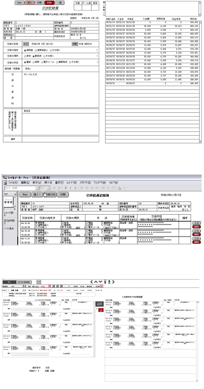 日賦金融システムソフトから始まり、サービサー・レンタル・リースソフト等を手掛け、現在は消費者金融と不動産担保や各種担保融資管理ソフトを制作しています。