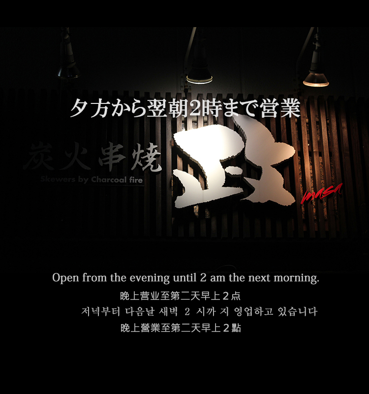 In Masa, we offer spacious space with counter and table seats so that you can enjoy our delicious yakitori and kushiyaki.