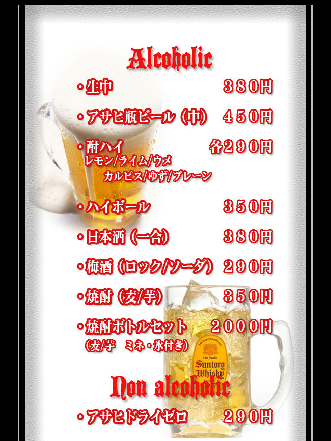 ビールは勿論、焼酎・日本酒・ウィスキーから