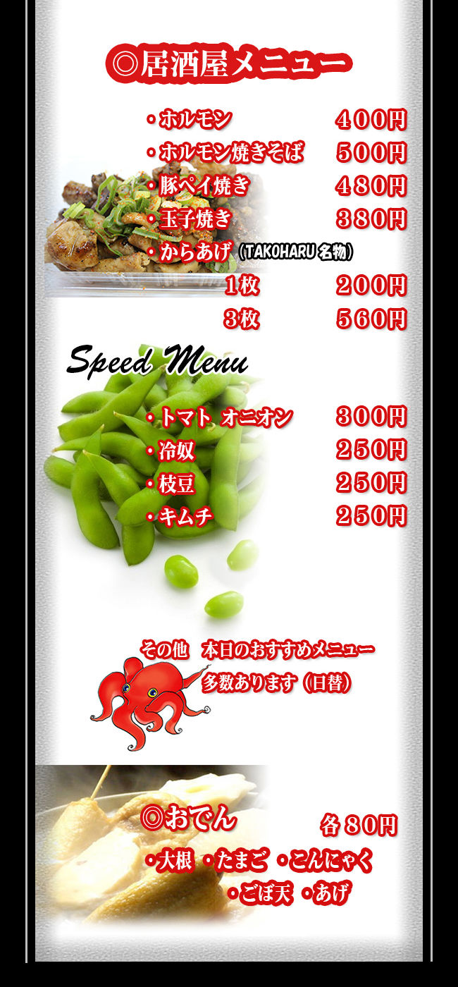 ・居酒屋メニューを準備して皆様のお越しをお待ちしております。